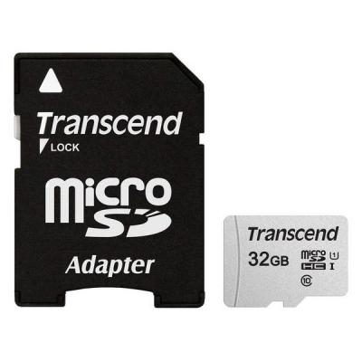 Карта памяти Transcend 32GB microSDHC class 10 UHS-I U1 (TS32GUSD300S-A) + SD адаптер отличается высокой производительностью и позволяет полностью раскрыть потенциал цифровых фото- и видеокамер, поддерживающих стандарт UHS-I.