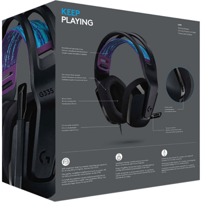 Наушники Logitech G335 Wired Gaming Black (981-000978) геймерские (игровые), проводное, Jack 3.5 мм, закрытые, Излучатель - 50 мм, 32 Ом, чувствительность - 87 дБ, 20 - 20000 Гц, с микрофоном, Материал амбушюр - силикон, длина шнура - 2 м, Black, 240 г