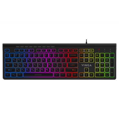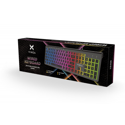 Клавиатура Vinga KB-460 Black мультимедийная, для ПК, мембранная, проводная, USB, полноразмерная, Подсветка - есть, английская, украинская, Клавиш - 104, Шнур - 1.5 м, 442.3 x 141 x 30.6 мм, 490 г