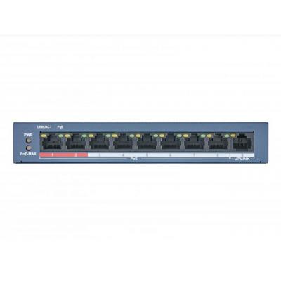Коммутатор сетевой Hikvision DS-3E0109P-E/M(B) неуправляемый, настольный/в стойку, Портов - 9, Fast Ethernet, Коммутация - 1.8 Гбит/с, Работа - от -10? до 55? C, Ш - 170 мм, Г - 93 мм, В - 28 мм, 0.35 кг, 4xPoE + 4xPoE+, 9 х 10/100 - RJ-45