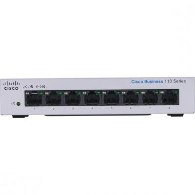 Коммутатор сетевой Cisco CBS110-8T-D-EU неуправляемый, в стойку, Портов - 8, Gigabit Ethernet, Коммутация - 16 Гбит/с, МАС - 8000 адресов, Работа - от 0? до 40? C, Ш - 160 мм, Г - 104 мм, В - 30 мм, 0.43 кг, 8x10/100/1000TX