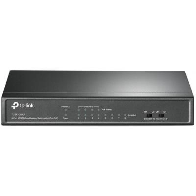 Коммутатор сетевой TP-Link TL-SF1008LP неуправляемый, настольный, Портов - 8, Fast Ethernet, Коммутация - 1.6 Гбит/с, МАС - 2048 адресов, Работа - от 0? до 40? C, Хранение - от -40? до 70? C, Ш - 171 мм, Г - 27 мм, В - 98 мм, 4xPoE, 8x10/100TX