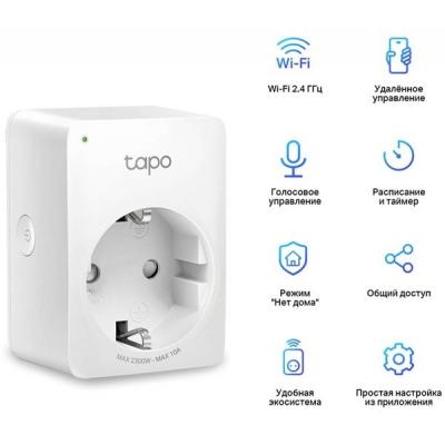 Умная розетка TP-Link Tapo P100 (1-pack) (Tapo P100(1-pack)) Wi-Fi, IEEE 802.11b/g/n, Bluetooth 4.2 (только для сопряжения), 2.4 ГГц, Android 4.3 +, iOS 9.0 +, 220 - 240 В, 10 А, 2300 Вт, кнопка питания, 0°С - +35° С, CE, ROHS, 72 х 51 х 40 мм, белый