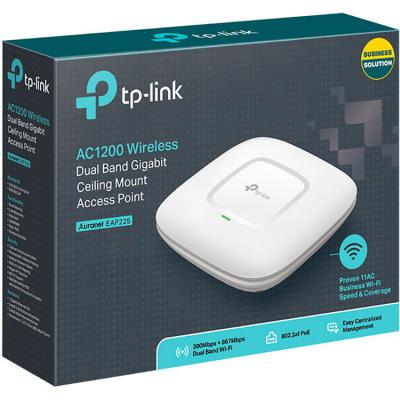 Точка доступа Wi-Fi TP-Link EAP225 Режимы работы - Wi-Fi точка, стандарты сетей - ac (до 867 Мбит/с), рабочая частота - 2.4 / 5 ГГц, тип антенны - встроенная/несъемная, интерфейсы - WAN 10/100/1000 Мбит/с