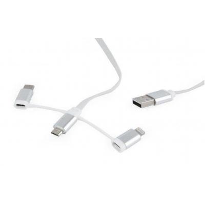 Дата кабель USB 2.0 AM to Lightning + Micro 5P + USB-C 1.0m Cablexpert (CC-USB2-AMLM32-1M-W) Тип - кабель, Тип коннектора 1 - USB 2.0, Тип коннектора 2 - micro USB, Lightning, USB Type-C, длина - 1 м, Цвет - белый