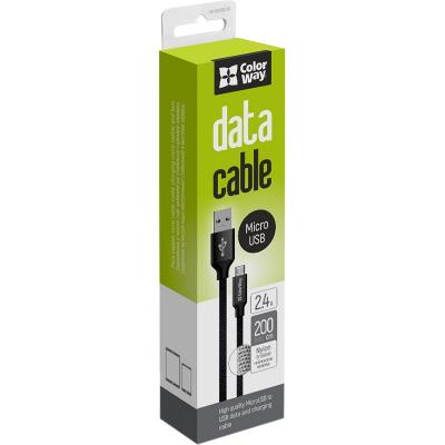 Дата кабель USB 2.0 AM to Micro 5P 2.0m black ColorWay (CW-CBUM009-BK) Тип - кабель, Тип коннектора 1 - USB 2.0, Тип коннектора 2 - micro USB, длина - 2 м, Номинальный ток - 2.4 А, нейлоновое покрытие, Цвет - черный