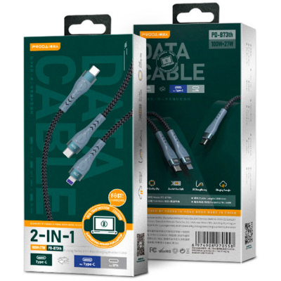 | Дата кабель USB-C to USB-C + Lightning 1.3m Azeada 27W/100W black Proda (PD-B73th-BK) Тип - кабель, Тип коннектора 1 - USB Type-C, Тип коннектора 2 - Lightning, USB Type-C, длина - 1.3 м, Номинальный ток - 5 А, 27 W, Цвет - черный |   | |