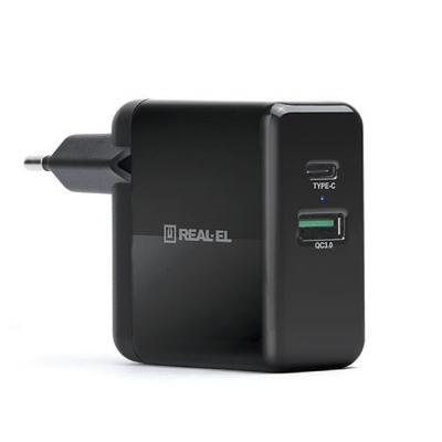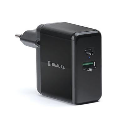 Зарядное устройство REAL-EL CH-350 black (EL123160017) Тип - адаптер, Питание - сеть, Назначение - универсальное, тип выходного подключения - USB Type-C, USB, Max - 3 А, 36 Вт, количество USB портов - 1 x USB, быстрая зарядка - Power Delivery, Quick Charge 3.0, черный