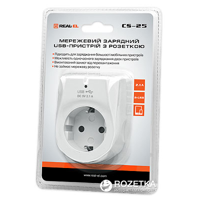 Зарядное устройство REAL-EL 2*USB 10W (CS-25)