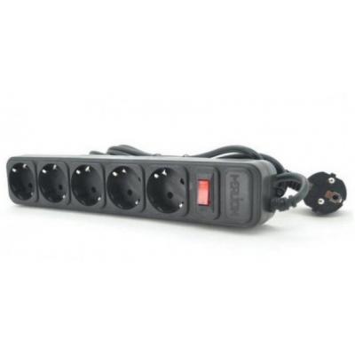 Сетевой удлинитель Merlion B530P Количество розеток - 5, евророзетка с заземлением (Тип F), Длина кабеля - 3 м, контакт заземления, с общим выключателем, Суммарная мощность подключенной нагрузки - <= 2200 Вт, Цвет - черный