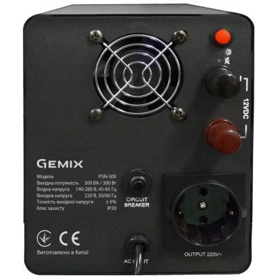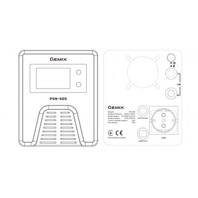 Источник бесперебойного питания Gemix PSN-500 для котлов, линейно-интерактивный (line interactive), 300 Вт, 500 В*А, правильная (чистая) синусоида, 140 до 280 В, АКБ - внешняя, без батареи, LCD - дисплей, 140 x 350 x 180 мм, 5 кг, ибп для котла