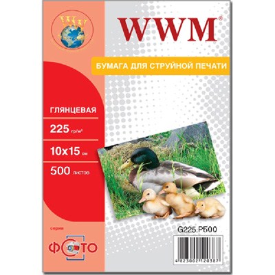Фотобумага WWM 10x15 (G225.F500) тип печати - струйный, цвет - белый, формат - 10 x 15 см, плотность - 225 г/м2, покрытие - глянец, количество - 500