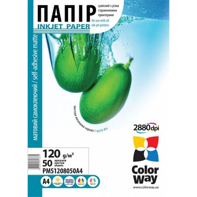 Фотобумага ColorWay A4 120г glossy 50л (PMS1208050A4) |