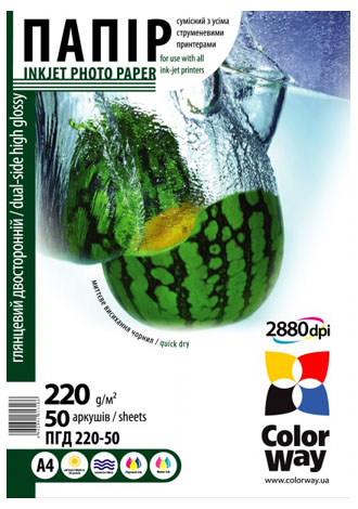 Бумага ColorWay A4 (ПГД220-50) подходит для печати на всех струйных принтерах.