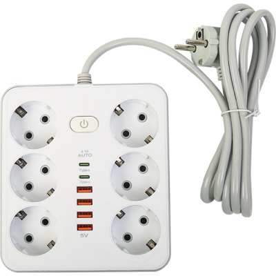 | | | | | |  Сетевой фильтр питания XoKo XK-SP-6-4-2-WH | | | | | |   +увеличить | Сетевой фильтр питания XoKo XK-SP-6-4-2-WH Количество розеток - 6, 2 x USB (type C), 4 x USB (type A), Длина кабеля - 2 м, контакт заземления, с общим выключателем, с USB, быстрая зарядка USB, Суммарная мощность подключенной нагрузки - <= 3000 Вт, RTL, Цвет - белый | Есть на складе