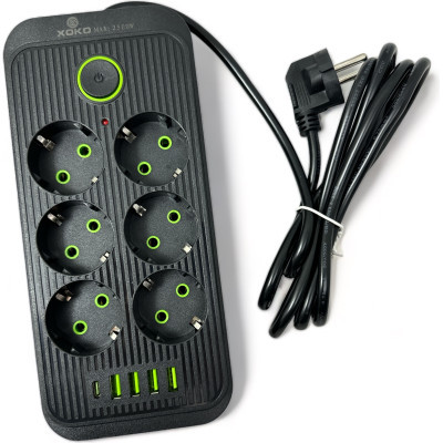 | | | | | | | | | |  Сетевой фильтр питания XoKo XK-SP-6-4-2-BK | | | | | |   +увеличить | Сетевой фильтр питания XoKo XK-SP-6-4-2-BK Количество розеток - 6, 2 x USB (type C), 4 x USB (type A), Длина кабеля - 2 м, контакт заземления, с общим выключателем, с USB, быстрая зарядка USB, Суммарная мощность подключенной нагрузки - <= 3000 Вт, RTL, Цвет - черный | Есть на складе