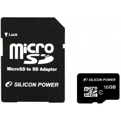 Карта памяти Silicon Power 16Gb MicroSD class 10 (SP016GBSTH010V10SP) microSDHC, 16 ГБ, Скорость чтения от - 17 (МБ/с), Class 10, Переходник - SD
