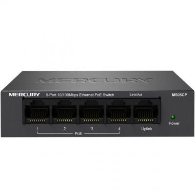 Коммутатор сетевой Mercury MS05CP неуправляемый, настольный, Портов - 5, Fast Ethernet, Коммутация - 1 Гбит/с, 4xPoE, 5 х 10/100 - RJ-45 | Есть на складе